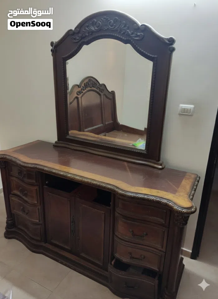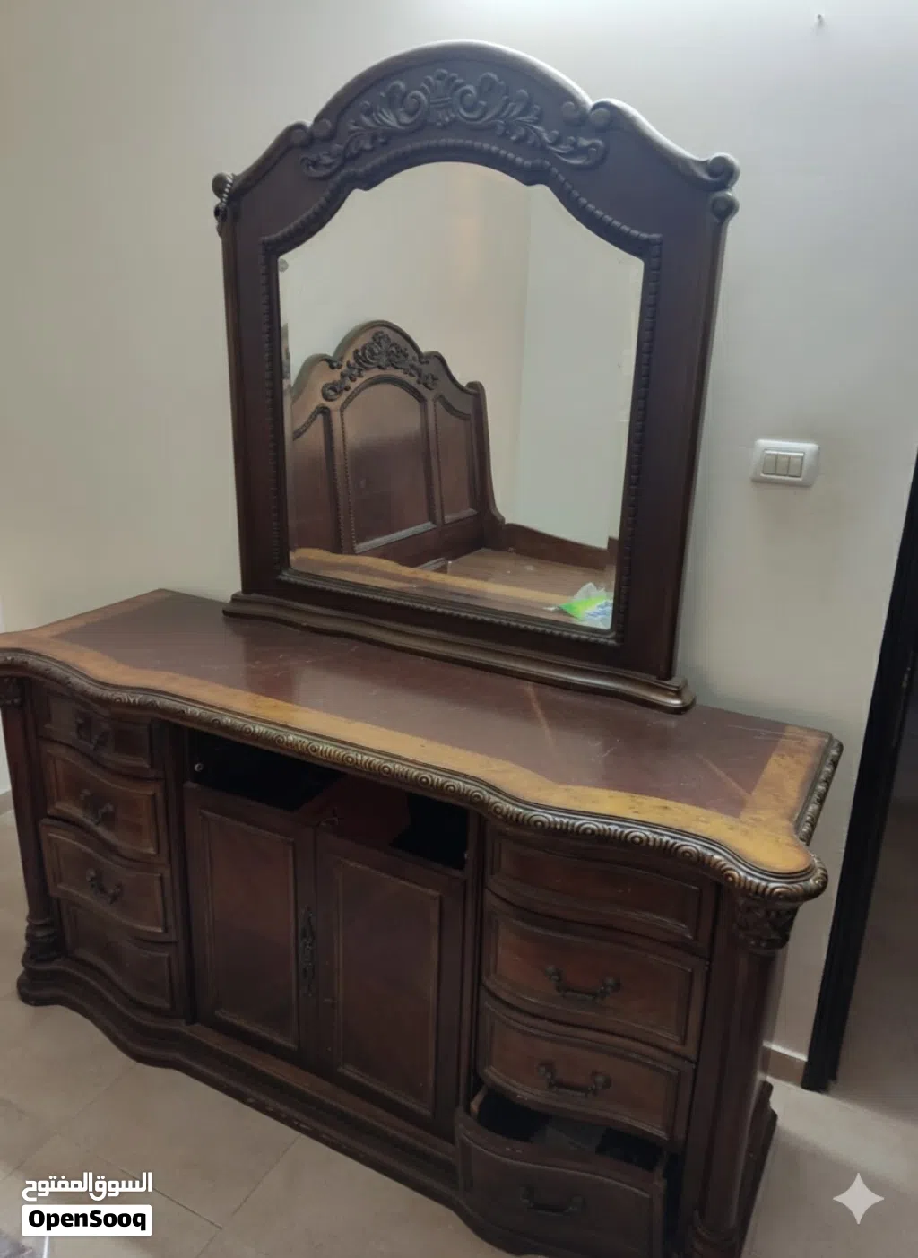 سرير مجوز كينج سايز+ 2 كومودينة+ تسريحة+ خزانة+ الفرشة